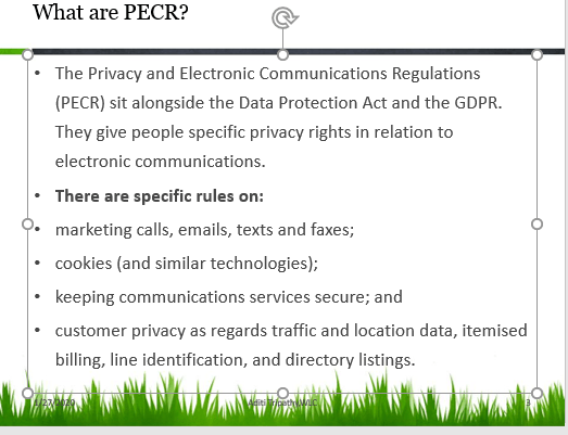 | Privacy Impact Assessment (PIA) are not a legal requirement under DPA but has always been ‘championed’ by the ICO | PlAs will be mandatory and must be carried out when there is a high risk to the freedoms of the individual. A PIA helps an organisation to ensure they meet an individual’s expectation of privacy |